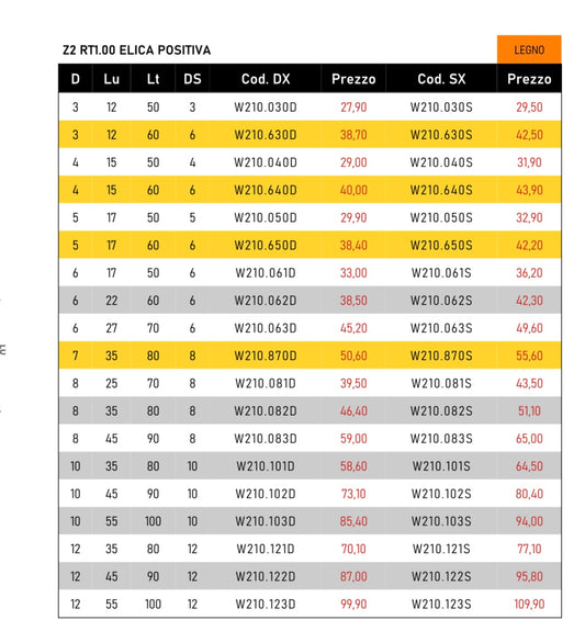 Fresa elicoidale Z1 a finire POSITIVA per legno